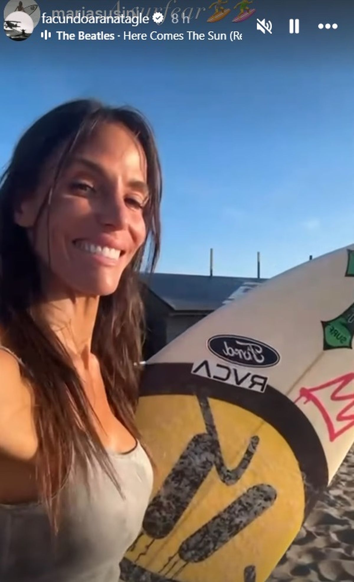 Susini se mostraba relajada y sonriente ya lista para ingresar al agua y acompanó la publicación con la canción Here Comes the Sun de The Beatles.