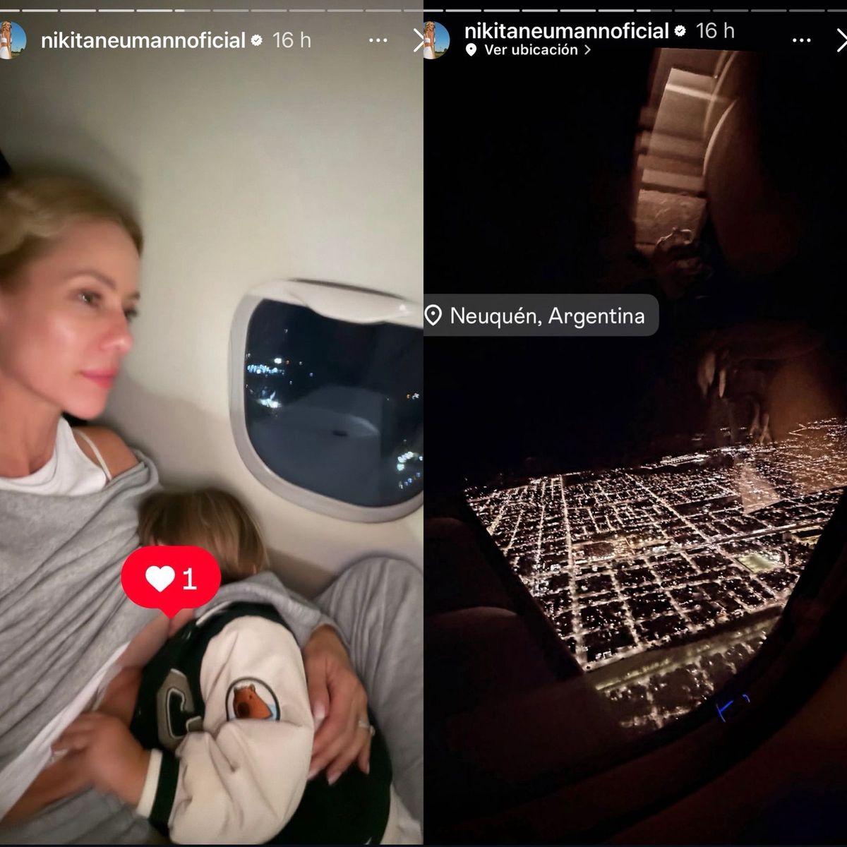 En las imágenes que compartió, se la pudo ver a bordo de un avión, con una postal nocturna de las luces de la ciudad desde el aire y un detalle que llamó especialmente la atención: la etiqueta que indicaba su destino, “Neuquén, Argentina”. Una elección que, lejos de ser casual, tiene un fuerte significado personal.