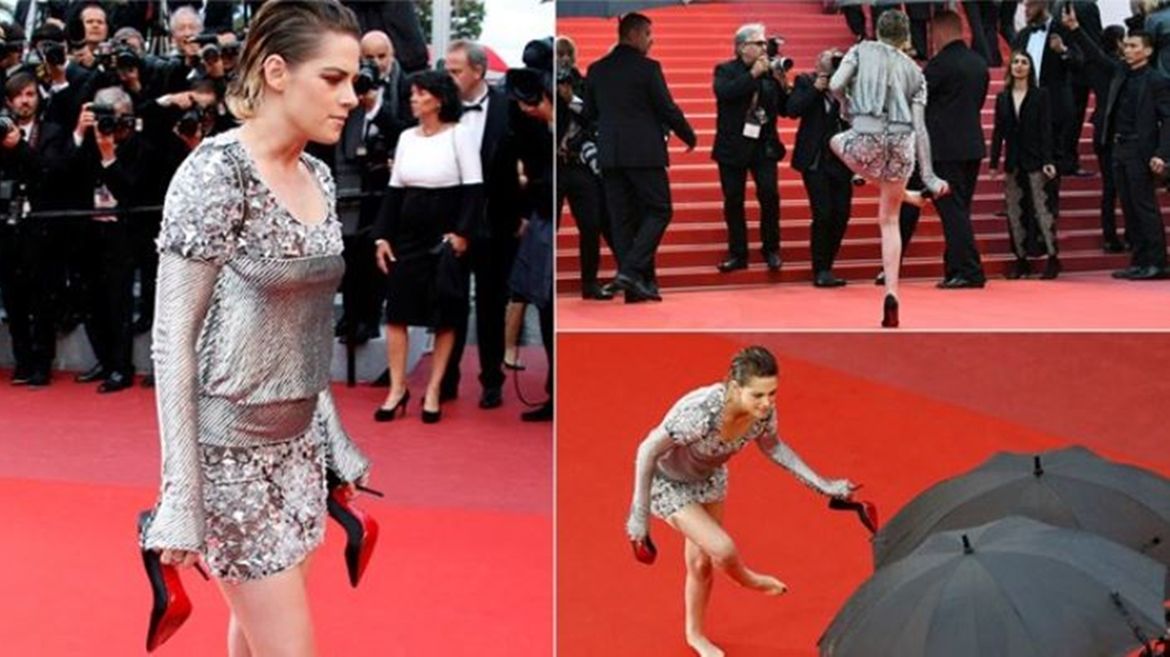 Hace un par de años, también en Cannes, Stewart posó para los fotógrafos con sus tacones puestos, pero después se los cambió por unas zapatillas.