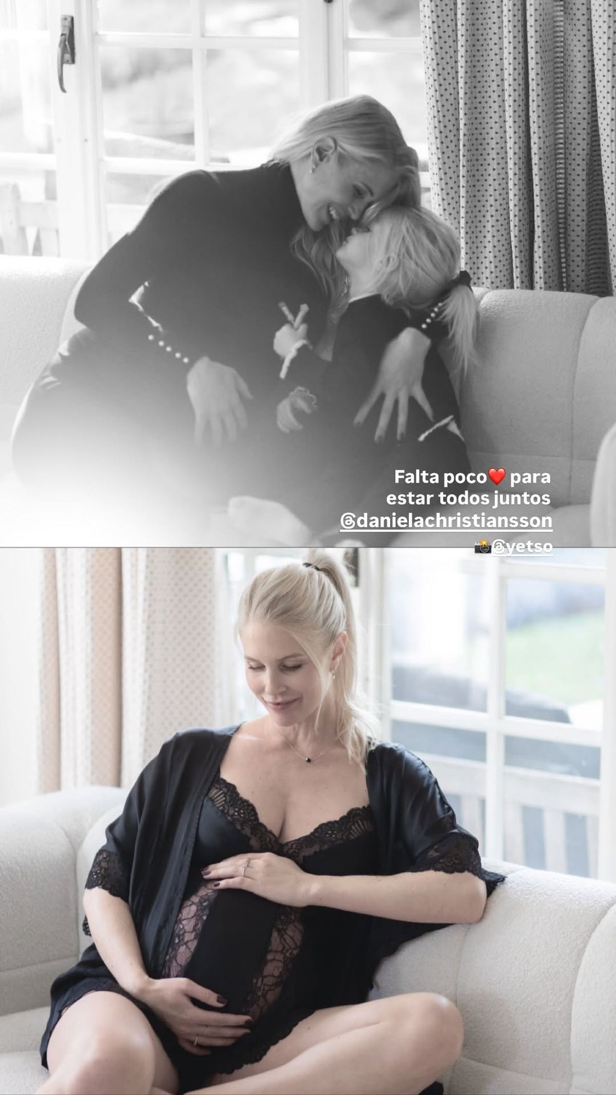 En medio de esta etapa tan especial, el exfutbolista decidió compartir un gesto lleno de ternura hacia su pareja y su hija menor, Elle. A través de sus historias de Instagram, Maxi publicó dos imágenes muy significativas: en una, en blanco y negro, se ve a Daniela junto a la pequeña; en la otra, la modelo sueca aparece con sus manos sobre su panza de embarazada.