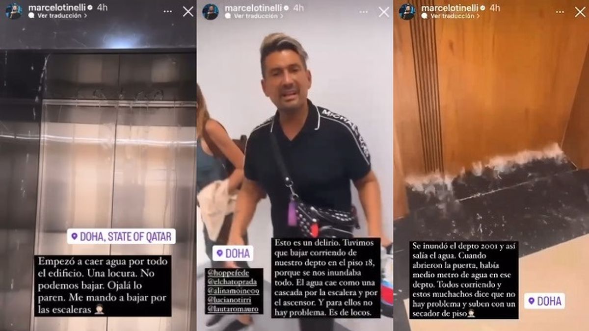 Y como si todo eso fuera poco, Marcelo Tinelli agregó ya en planta baja: "Una cosa de locos. Todos acá en el lobby después de todo lo que pasó... Se está inundando el edificio y llegan 2 pizzas. No lo puedo creer", mientras El Tirri intentaba explicarle al delivery que no podía subir por la situación de emergencia que estaban atravesando.