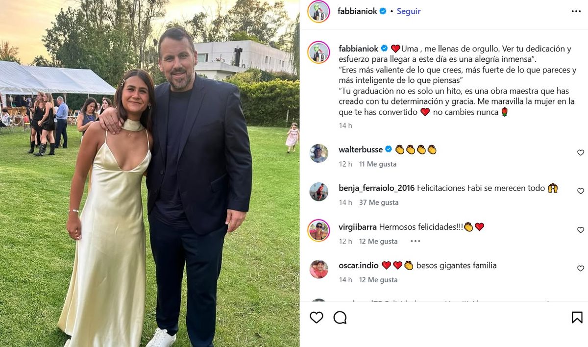 “Tu graduación no es solo un hito; es una obra maestra que has creado con tu determinación y gracia. Me maravilla la mujer en la que te has convertido. No cambies nunca”, concluyó el Ogro Fabbiani su especial posteo para su hija Uma.