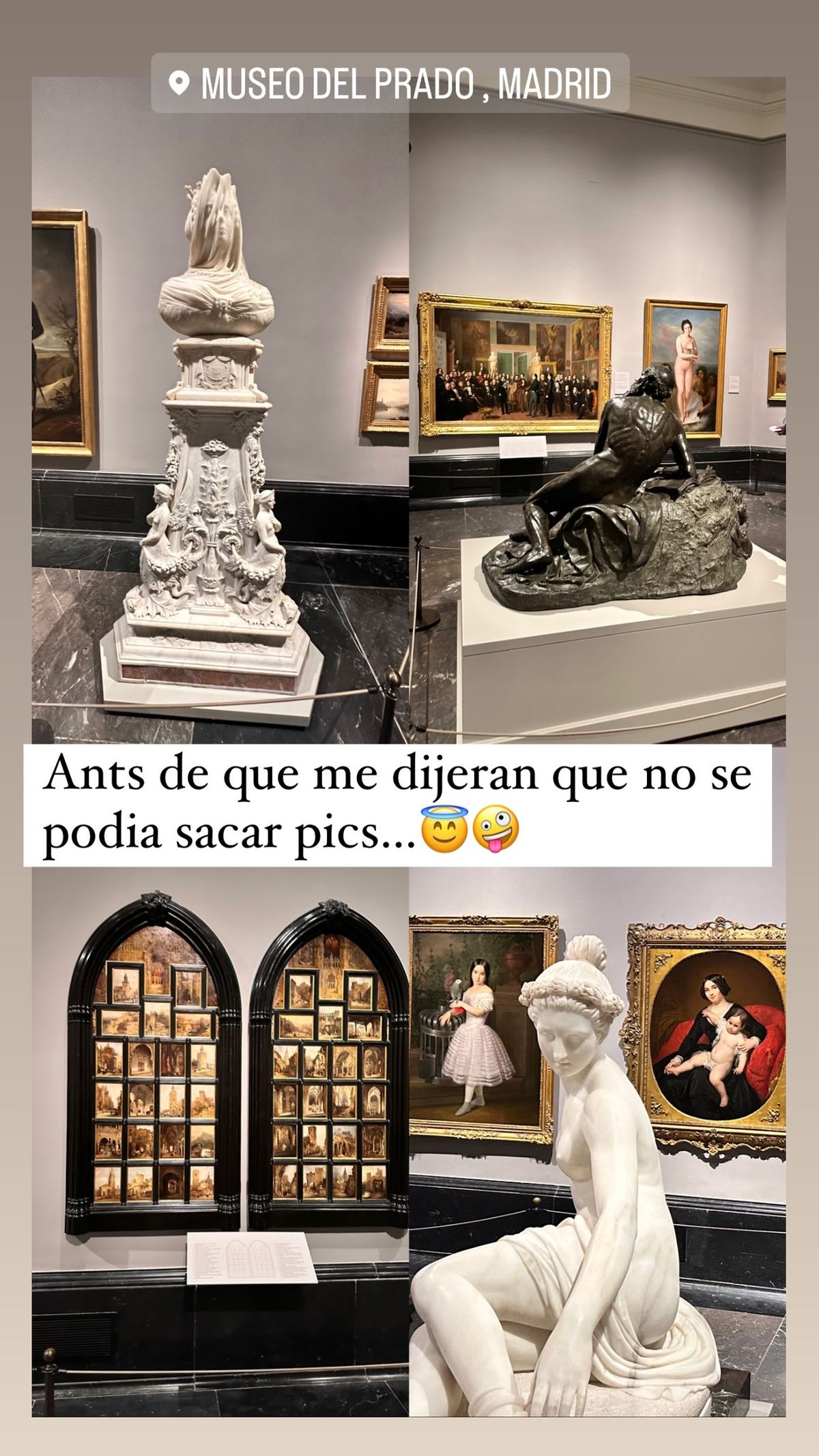 “Antes de que me dijeran que no se podían sacar pics”, escribió la rubia sobre un collage con cuatro fotos de estatuas, en referencia al comentario que le hizo el personal de seguridad del museo.