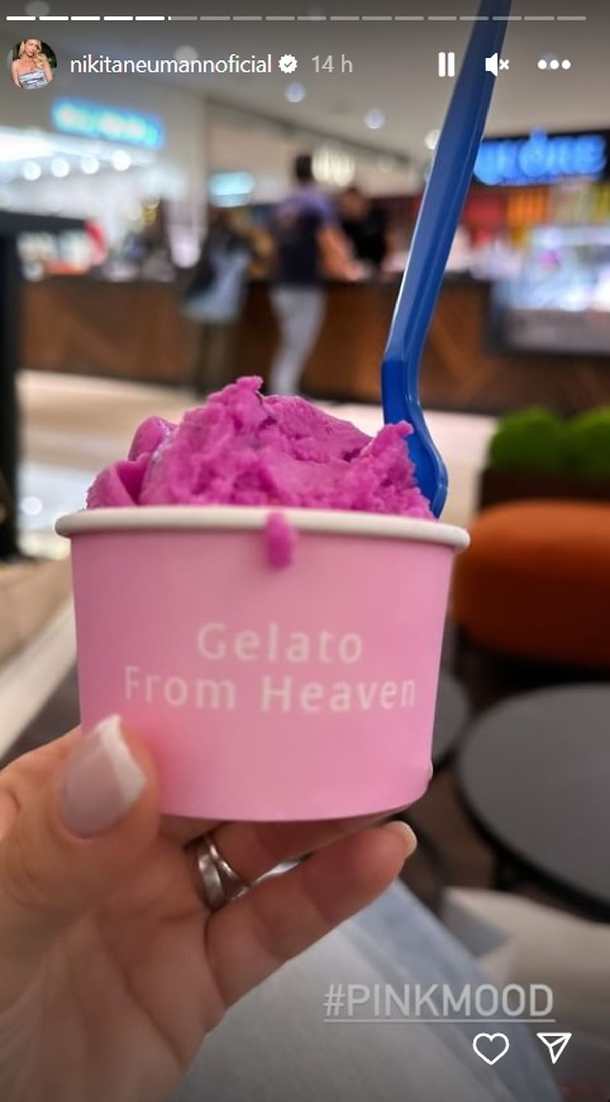 Y en otra postal, con el postre en primer plano, reflejó: "Pinkmood". Cabe recordar que Neumann se encuentra transitando el tercer mes de gestación de su bebé, el primero con el piloto de carreras, con quien comenzó el romance a principios de 2021.