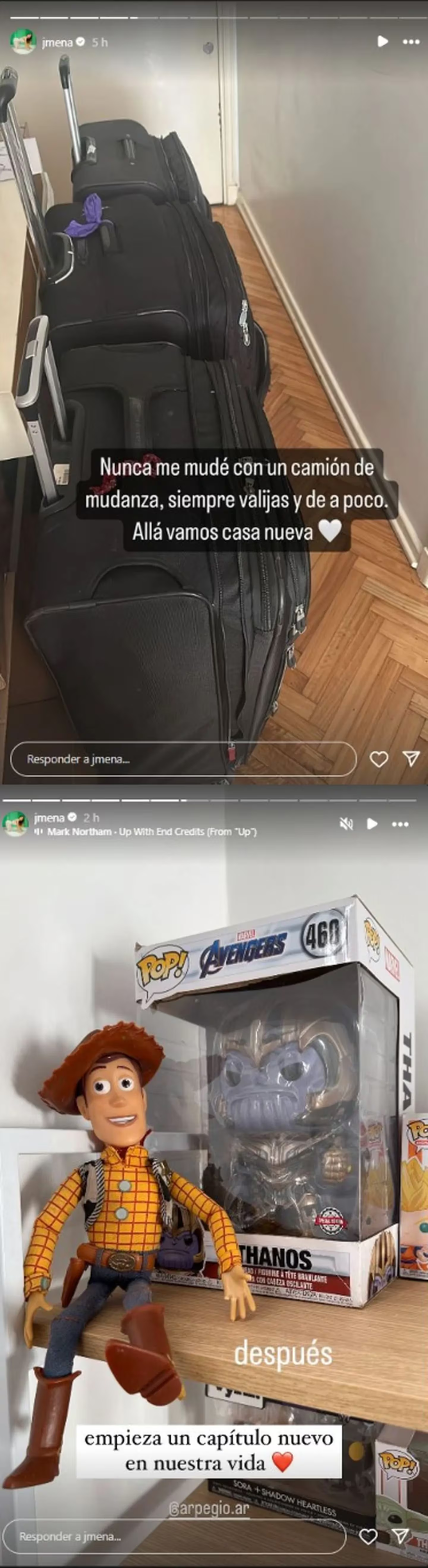 En las últimas horas, la actriz y cantante contó que las remodelaciones terminaron y empezó con el proceso de mudanza. En una historia, la mamá de Momo mostró las valijas que preparó para ir llevando sus cosas a la nueva propiedad.