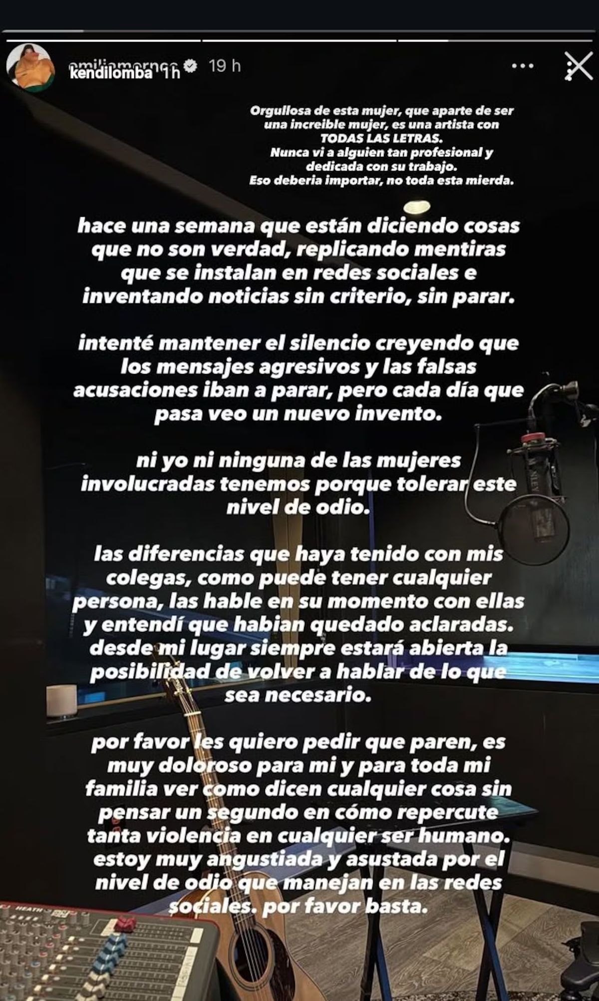 El cruce de Emilia Mernes con algunas colegas derivó en una catarata de mensajes hostiles en redes sociales, un escenario que la artista decidió enfrentar de manera directa. Con un descargo sincero, pidió que se bajara la intensidad de los ataques y expuso su vulnerabilidad al admitir: “Tengo miedo”.