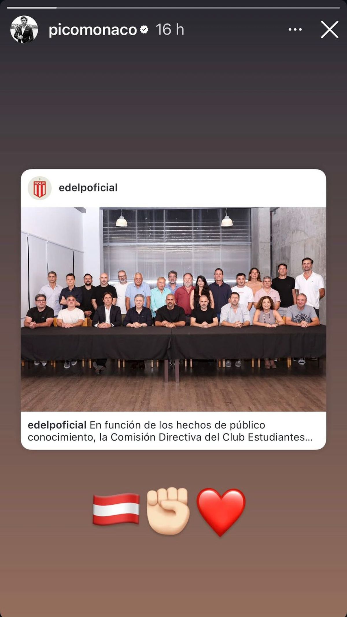 Mientras tanto, el extenista optó por no hacer referencia alguna a esa sugestiva acción virtual, si bien se metió en otra polémica, manifestando su total apoyo a Juan Sebastián Verón, el presidente de Estudiantes de La Plata, equipo del que es un fan declarado, quien quedó inhabilitado para ejercer su cargo como presidente durante los próximos seis meses, dado que el conjunto platense le había dado la espalda a los jugadores de Rosario Central, para protestar por la decisión de haberle dado el título de campeón de la Liga tras haber terminado primero en la tabla anual.