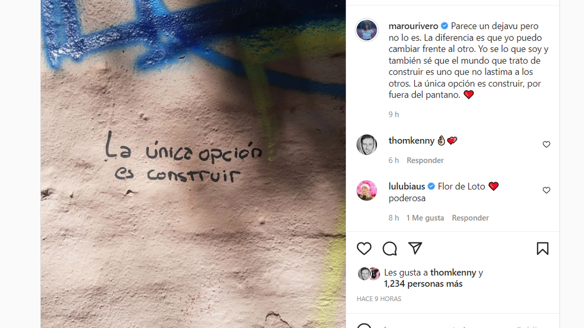 "Parece un deja vu pero no lo es. La diferencia es que yo puedo cambiar frente al otro. Yo sé lo que soy y también sé que el mundo que trato de construir es uno que no lastima a los otros. La única opción es construir, por fuera del pantano", expresó la influencer.