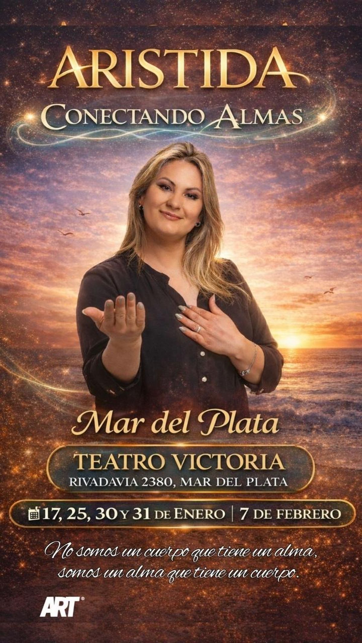 En paralelo, Aristida La Mística contó que tiene agenda confirmada en la Costa Atlántica y que ya se presentará los días 17, 25, 30 y 31 de enero, y el 7 de febrero, en el Teatro Victoria deMar del Plata, ubicado en Rivadavia 2380, con su presentación “Conectando Almas”, donde promete nuevas lecturas energéticas, mensajes espirituales y encuentros cercanos con el público.