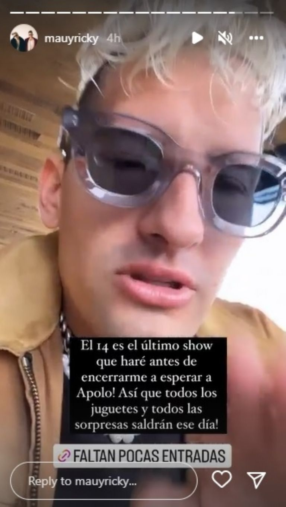 Desde sus redes, el hijo de Ricardo Montaner anunció que el 14 será su última presentación "antes de encerrarme a esperar a Apolo".