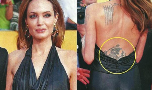 Angelina fue tatuada con el doloroso estilo tradicional tailandés: el artista trabajó con la mano manipulando una aguja larga dentro de un tubo hueco, por lo que todos los miles de pinchazos son de uno en uno.