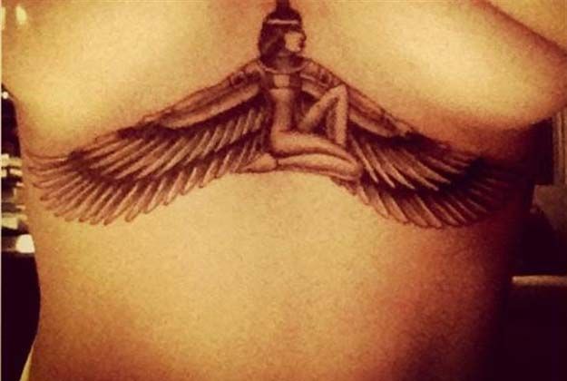 La cantante oriunda de Barbados se realizó en tórax, justo debajo de los pechos, un tattoo de la diosa egipcia Isis. "Diosa Isis, mujer completa, modelo para las generaciones futuras", es el significado del dibujo, según explicó a sus seguidores la artista.