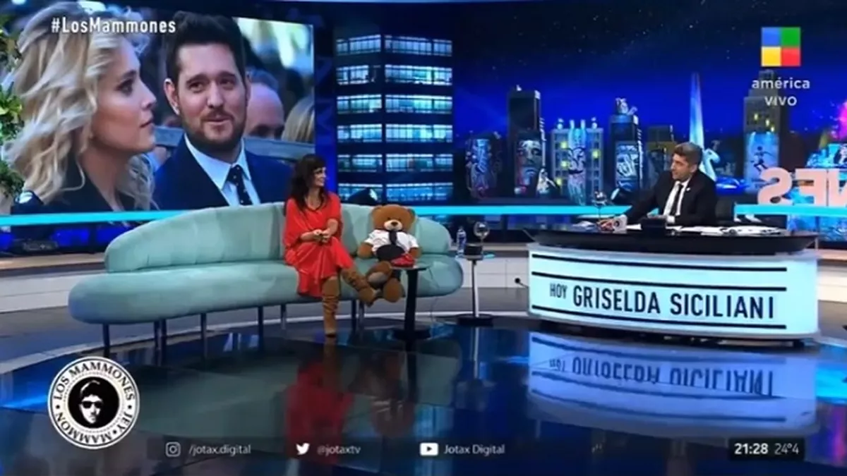 De visita al programa Los Mammones en la pantalla de América TV, Griselda Siciliani revivió este martes el desopilante episodio en el que una noche cruzó miradas con Michael Bublé, con Luisana Lopilato y Adrián Suar presentes, creyendo que el cantante había posado sus ojos en ella. Pero lo cierto es que fue todo una gran confusión.