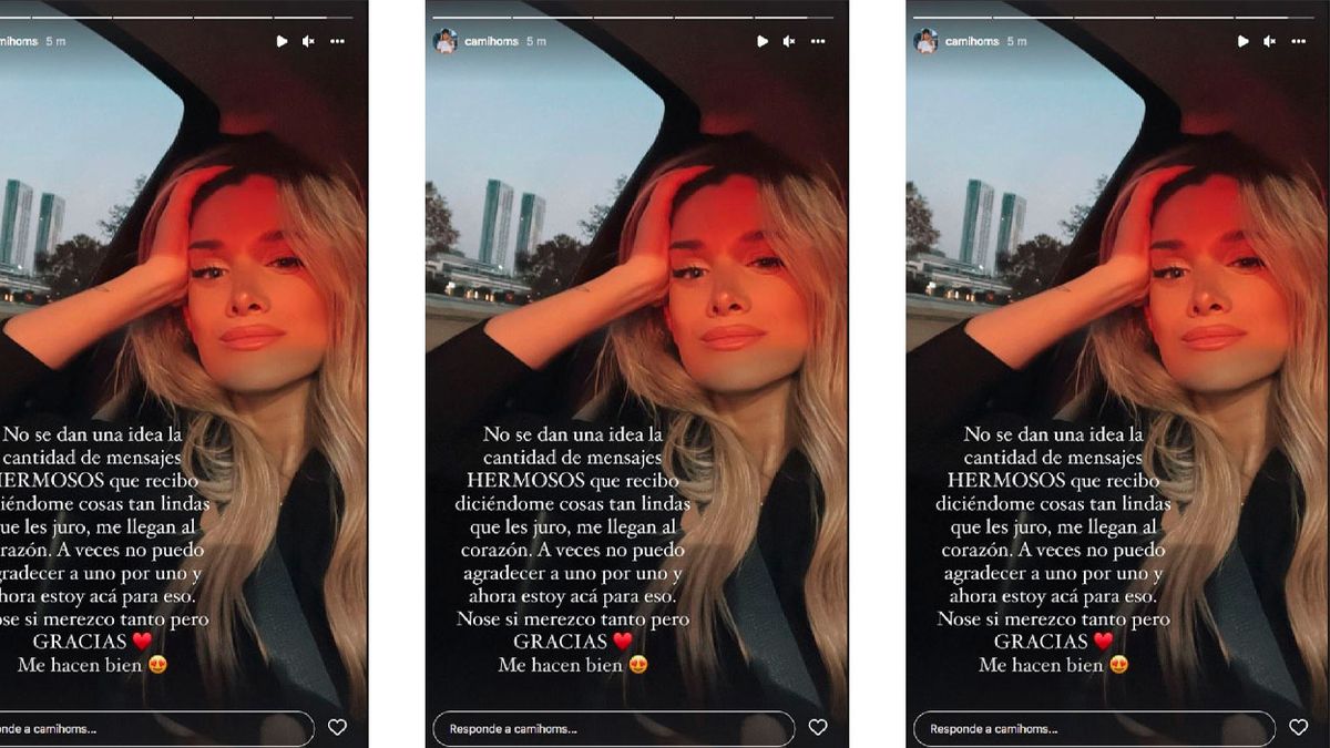 "No se dan una idea la cantidad de mensajes hermosos que recibo diciéndome cosas tan lindas que les juro, me llegan de corazón. A veces no puedo agradecer a uno por uno y ahora estoy acá para eso. No sé si merezco tanto pero gracias. Me hacen bien", escribió Homs en una historia de Instagram.