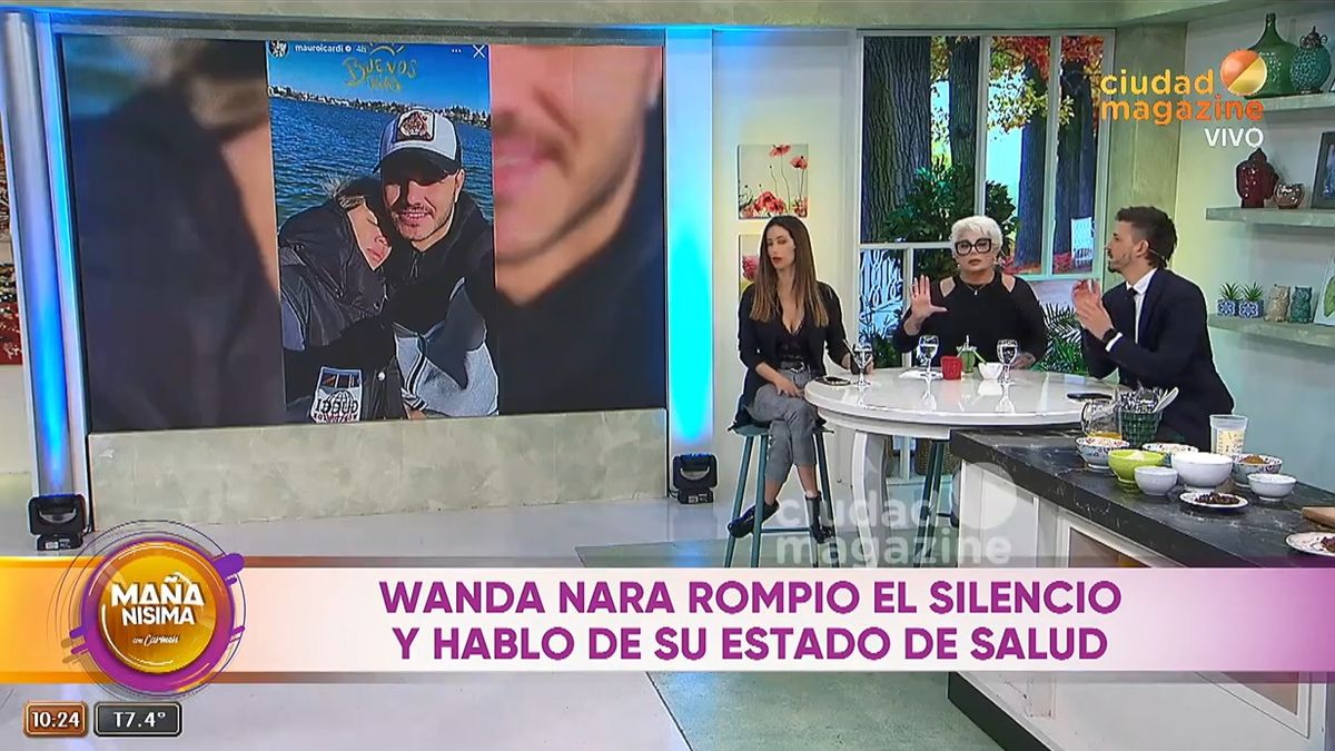 Es por eso que este martes Carmen Barbieri abordó el tema de la salud de Wanda y las reacciones de su entorno familiar, donde con su equipo remarcaron el comentario de Jorge Rial sobre las críticas a don Nara. "Bueno, Jorge Rial ayer dijo en una nota en LAM que Andrés 'no tiene que ir más a la tele'", deslizó Estefi Berardi. "¿Por qué? Puede ir aunque tal vez no ahora", lanzó entonces la conductora.