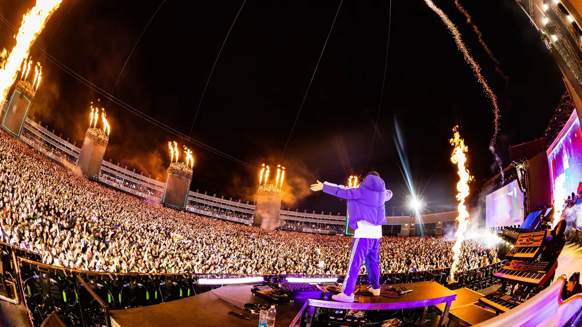 La intro seguida de la BZRP #36 de Nathy Peluso hizo explotar la fiesta, una marea humana que se movió a la par de ese mago de la música que arrancaba el show. Le seguirían las colaboraciones más emblemáticas de su carrera enlazadas por la ovación permanente.