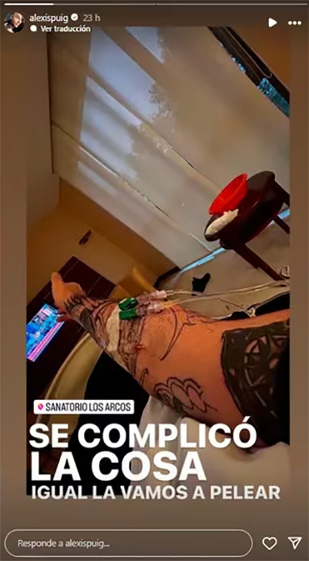 A través de sus historias de Instagram, el periodista subió una imagen desde la cama del hospital, en la que se ve parte del brazo recibiendo medicación intravenosa. "Se complicó la cosa. Igual la vamos a pelear", escribió sobre la foto.