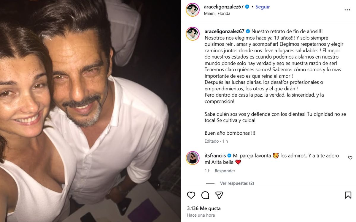 La actriz Araceli González compartió una imagen del comienzo de año con su marido Fabián Mazzei con emotivas palabras en el primer fin de semana del 2026.