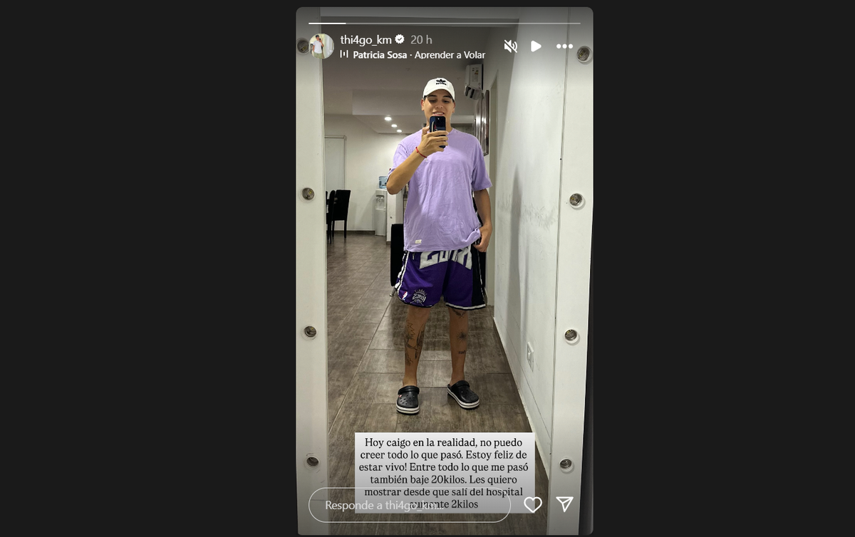 De todos modos, Thiago aclaró que ya está cumpliendo con un plan de alimentación para recuperar lo que bajó. "Les quiero mostrar desde que sali del hospital aumenté 2 kilos", destacó.