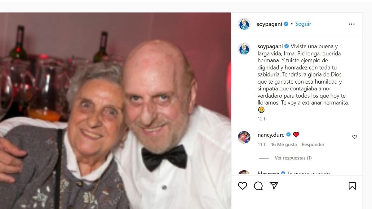 "Te voy a extrañar hermanita", cerró con mucho dolor su mensaje. Desde PrimiciasYa le enviamos un fuerte abrazo a Horacio Pagani y toda su familia en este difícil momento.