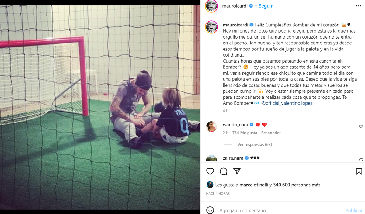 Valentino, el hijo mayor de Wanda Nara y Maxi López, está de cumpleaños. En su cuenta de Instagram, Mauro Icardi le dedicó un profundo mensaje al joven, con quien tiene un vínculo muy afectuoso.