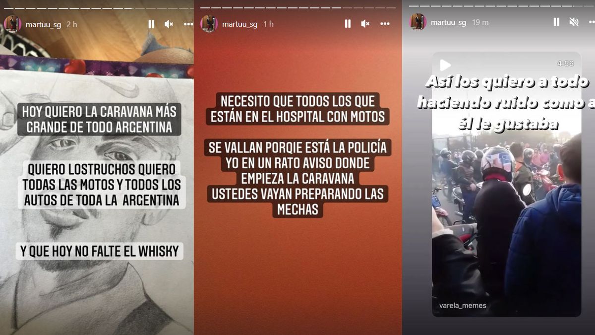 Ante el revuelo, Martina advirtió que no era ese el mejor punto de encuentro. "Necesito que los que están en el hospital con las motos se vayan porque está la policía. En un rato, aviso dónde empieza la caravana", dijo la hermana del artista.