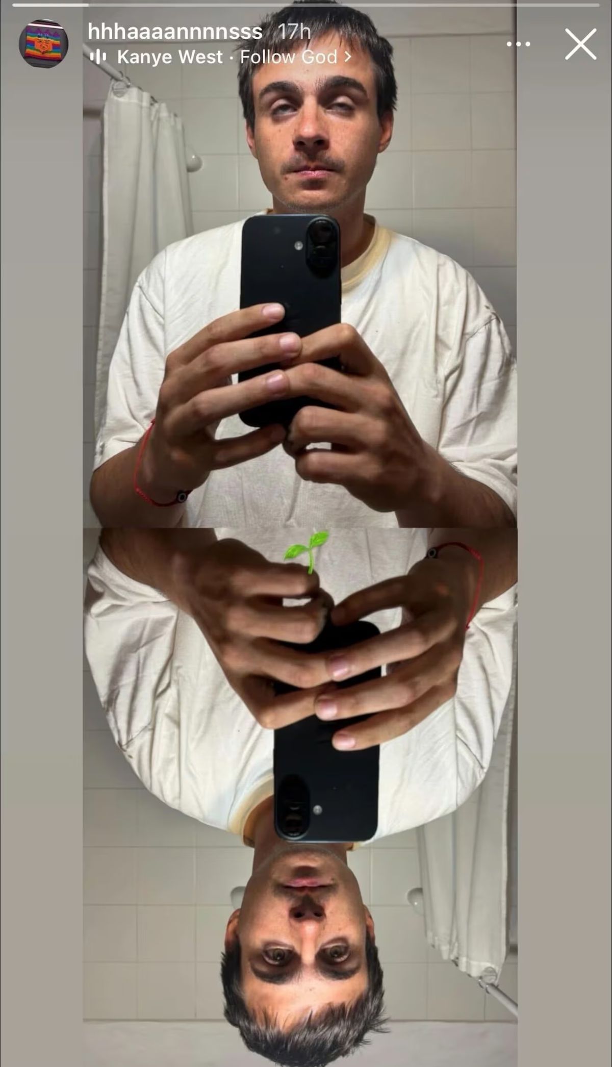 Para acompañar la imagen, Hans eligió musicalizar el posteo con “Follow God” de Kanye West, un tema que subraya un clima íntimo y reflexivo. La letra no pasó desapercibida: “Padre, me estiro. Estiro mis manos hacia ti. Realista, así es tu vida, intenta vivirla bien”, dice una de sus estrofas.