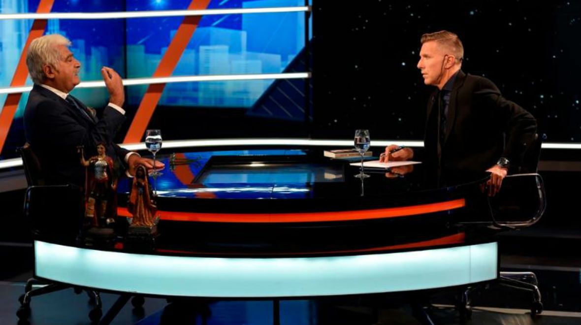 Junto a él, Eduardo Feinmann, Edi Zunino, Fernando Carnota Daniel Santoro, Tato Young, Sergio Berensztein, Turco Asis y Romina Manguel.