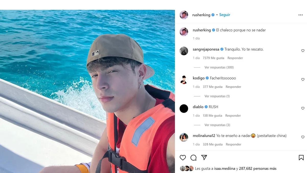 "El chaleco porque no se nada", expresó el oriundo de Santiago del Estero en una foto de paseo por un barco en medio del mar. A lo que su novia reaccionó pura pasión: "Tranquilo. Yo te rescato".