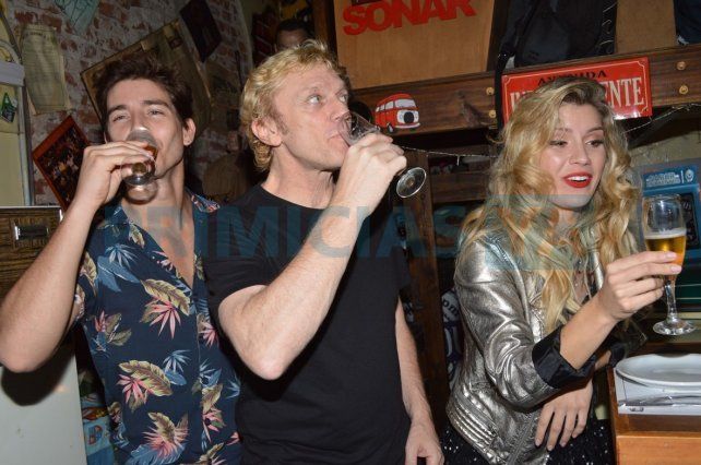 Una vez finalizada la función, los tres actores se quedaron sacándose selfies con el público que se agolpó a la salida del teatro y luego celebraron el éxito en un restó de la zona de la calle Güemes en Mar del Plata.