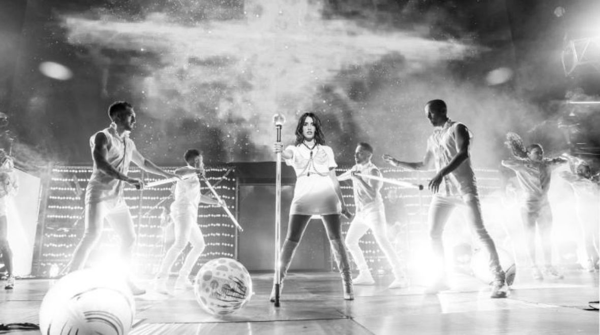 La cantante se presentó ante casi diez mil personas. Las imágenes del beso con la bailarina en una jugada coreografía.