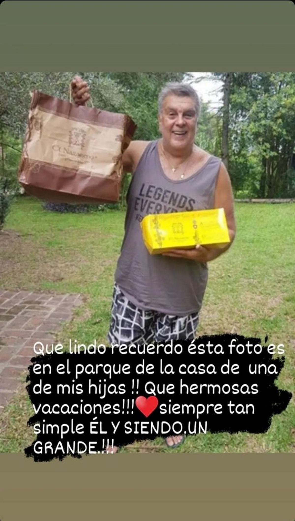 "Qué lindo recuerdo. Esta foto es en el parque de la casa de una de mis hijas. Qué hermosas vacaciones. Siempre tan simple él, siendo un grande", escribió la rubia, dejando en evidencia que mantiene una excelente relación con el periodista.