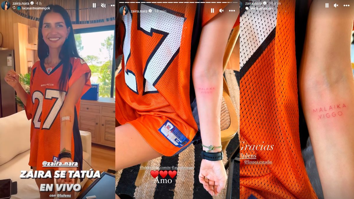 Zaira se tatuó los nombres de sus hijos, Viggo y Malaika, fruto de su relación con el empresario Jakob Von Plessen, de quien se separó en 2022. "Amo", escribió la modelo en sus historia en Instagram, donde mostró cómo quedó el tattoo.