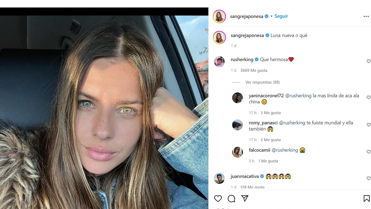 A lo que su novia reaccionó pura pasión: "Tranquilo. Yo te rescato". Después quien devolvió el piropo virtual fue Rusherking, al reaccionar a una selfie de la actriz en el auto.