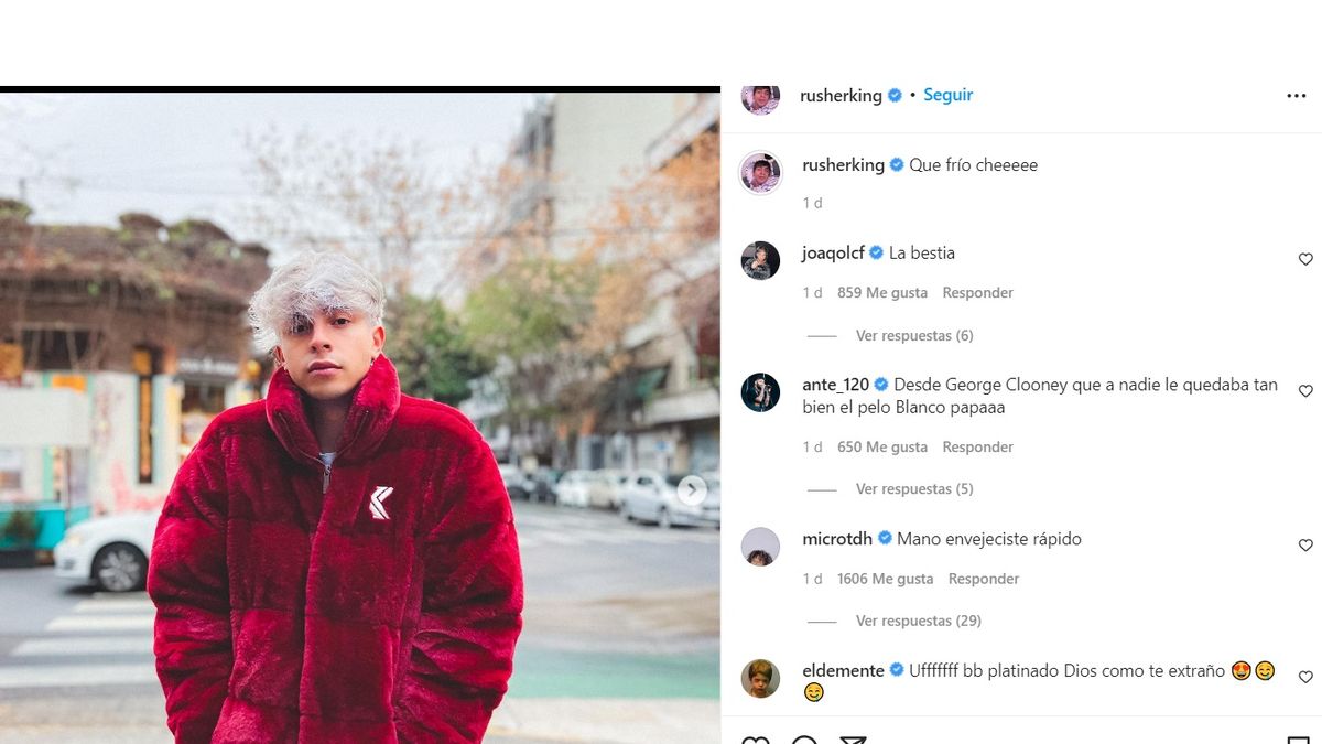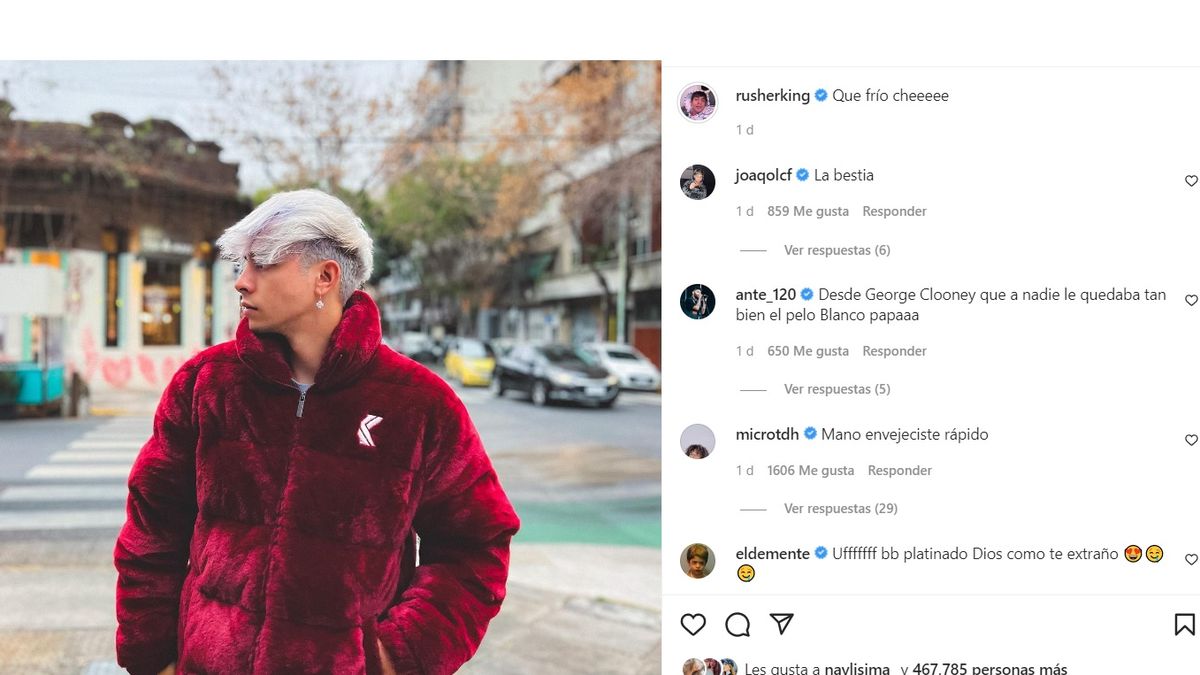 Ahora, desde las redes sociales Rusherking sorprendió el jueves al mostrar su drástico cambio de look donde pasó del color castaño en su cabello a un marcado platinado.