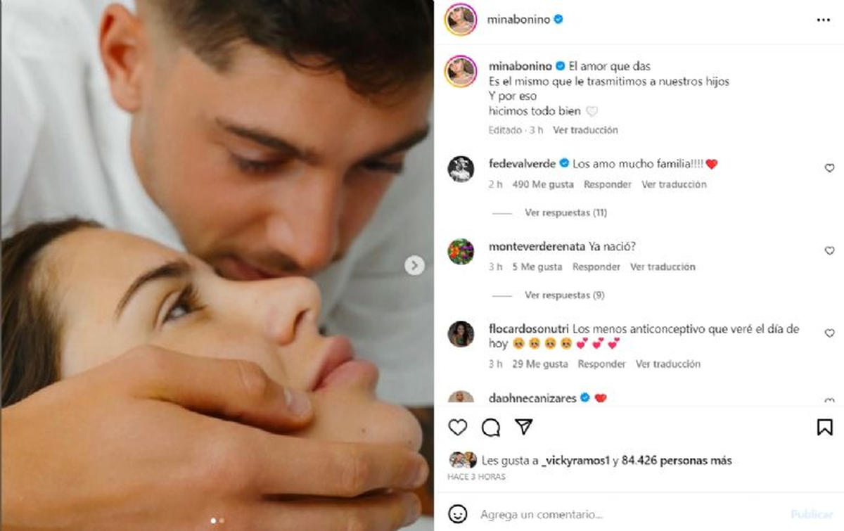 En la misma publicación, Mina colgó una foto de Benicio, de 3 años, dándole un beso al bebé. "Los amo mucho", exclamó el futbolista en los comentarios, feliz por este hermoso presente.