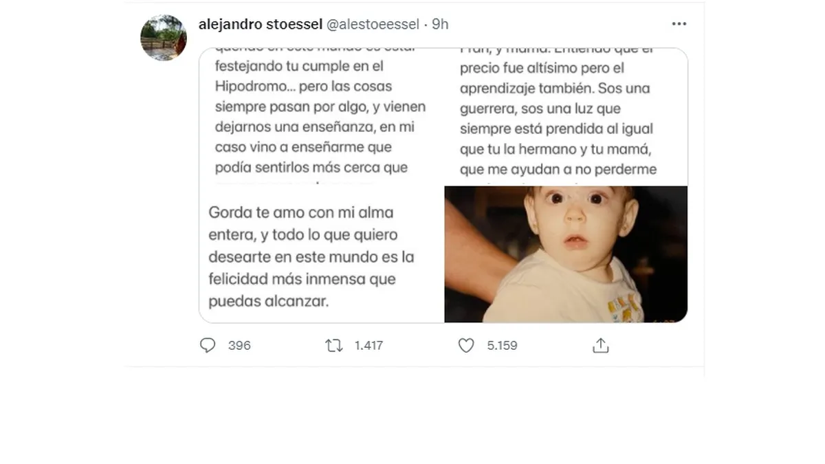 “Gorda, te amo con mi alma entera. Y todo lo que quiero desearte en este mundo es la felicidad más inmensa que puedas alcanzar”, concluyó el productor con una tierna imagen de su hija de bebé.
