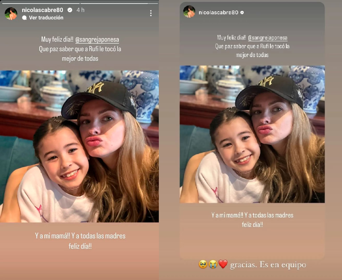 “Y a mi mamá y a todas las madres, feliz día”, señaló Nico, quien en varias oportunidades habló de la buena relación que lograron consolidar con su expareja.
