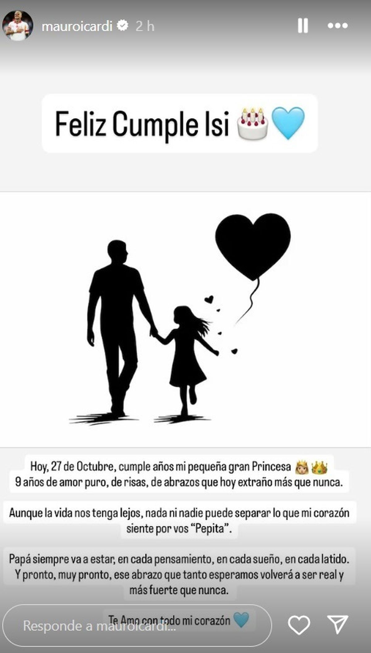 Mauro Icardi vivió un 27 de octubre muy especial y con sensaciones encontradas por la fecha donde su hija Isabella cumplió 9 años y a distancia compartió un posteo en las redes sociales.