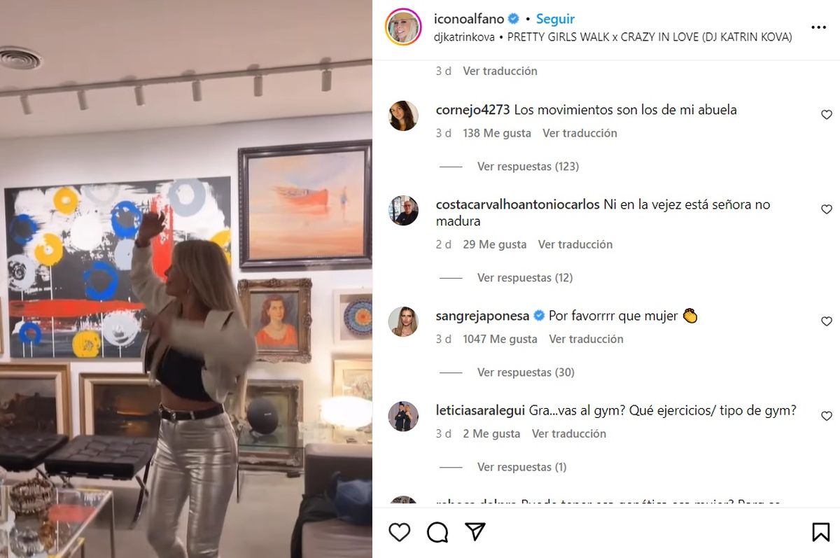 Lo cierto es que desde Instagram la actriz comentó maravillada una publicación de Graciela Alfano donde se la ve espléndida y a puro baile, llena de felicidad.