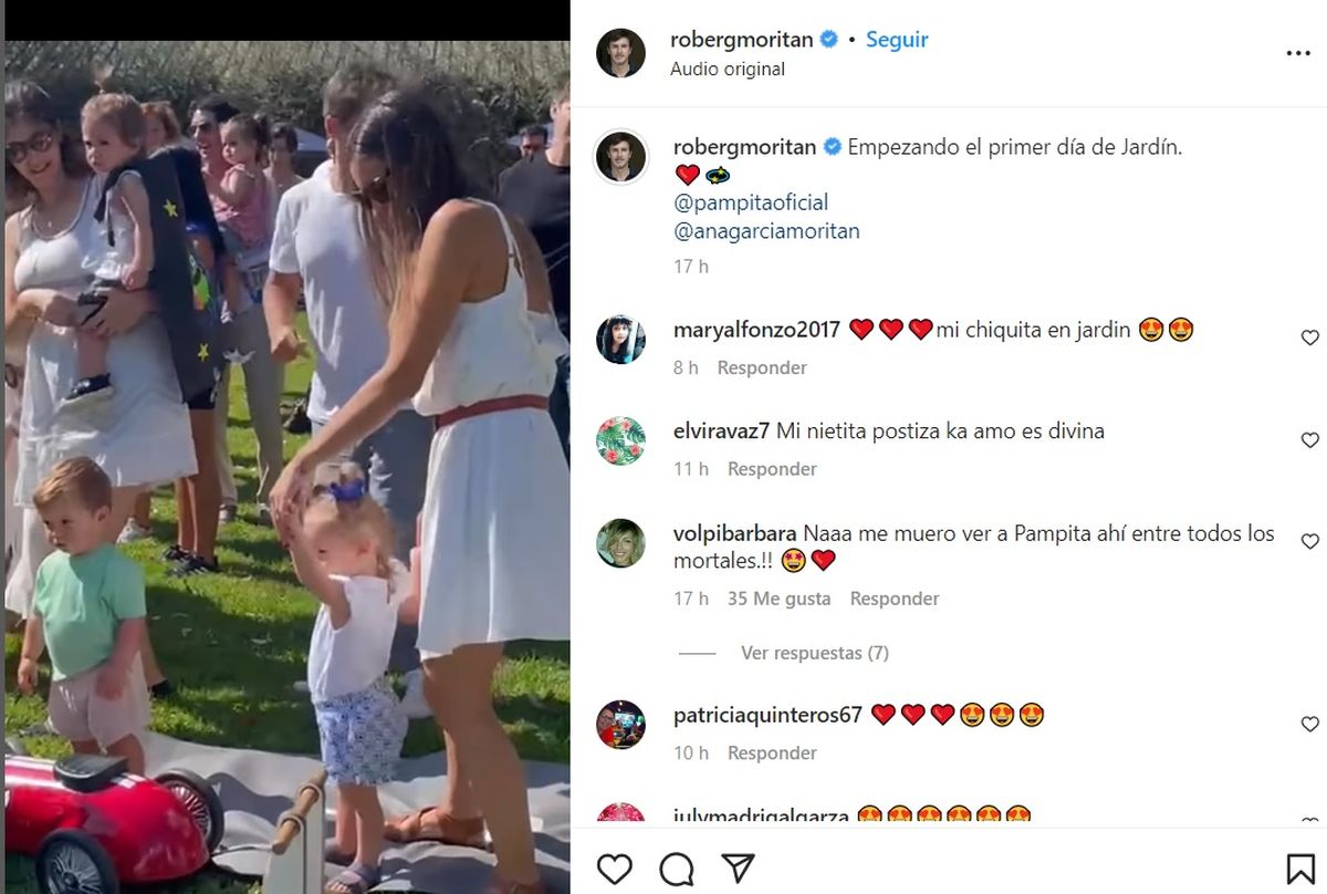 "Empezando el primer día de Jardín", expresó el político en su cuenta de Instagram junto a un video con las imágenes al aire libre de Ana junto a sus compañeritos.
