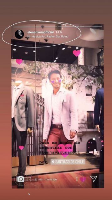 En las últimas horas la joven, de 27 años, sorprendió con un picante mensaje que dejó en una historia de su cuenta de Instagram. “Pues me acabo de encontrar con Benjamín Vicuña“, escribió junto a la foto de una publicidad hecha por el artista. Todo esto acompañado por la canción “Sex bomb” (“Bomba sexual”).