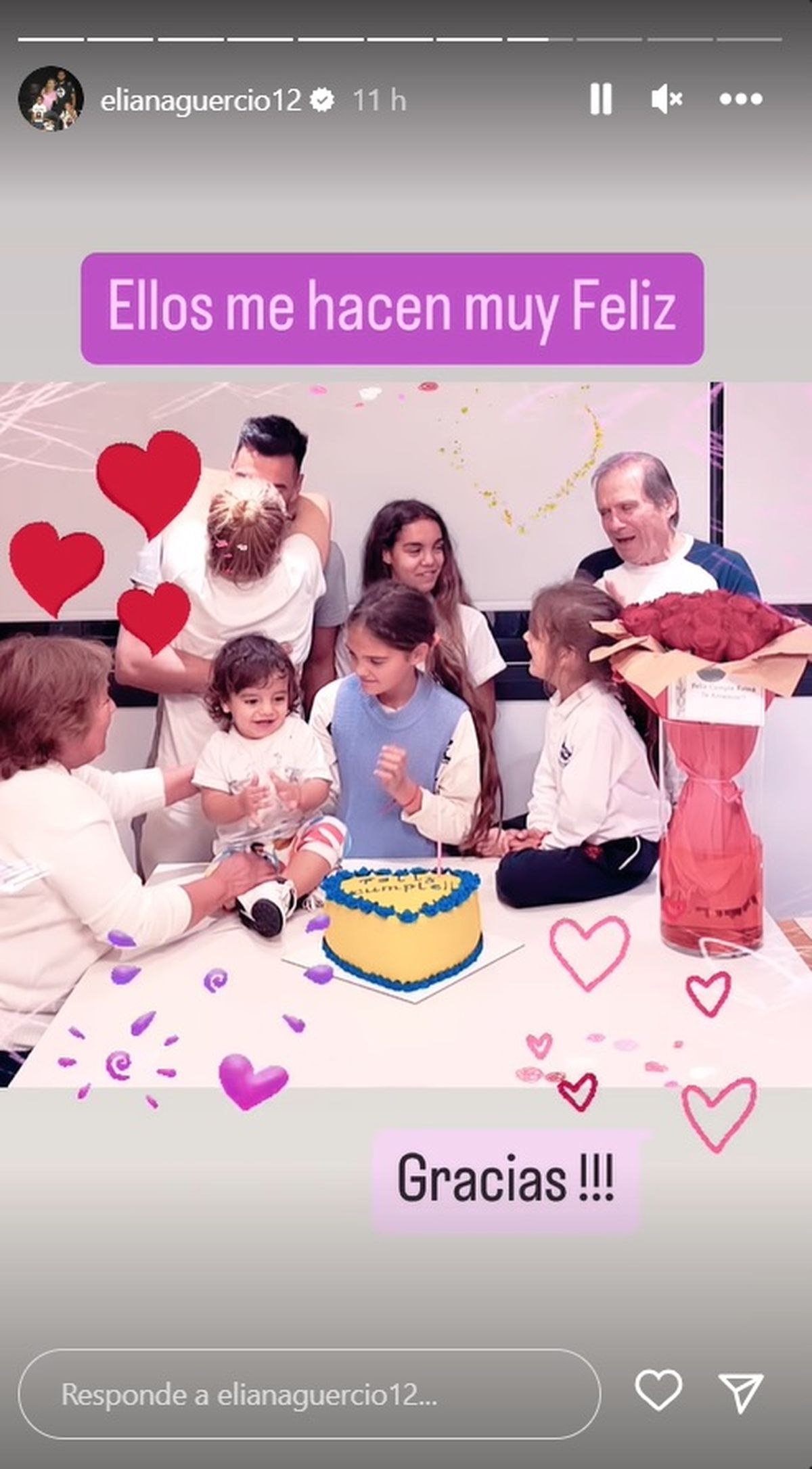 "Ellos me hacen muy feliz, gracias!!!", expresó emocionada Eliana Guercio en sus historias de Instagram con una postal de la celebración familiar por su cumpleaños.