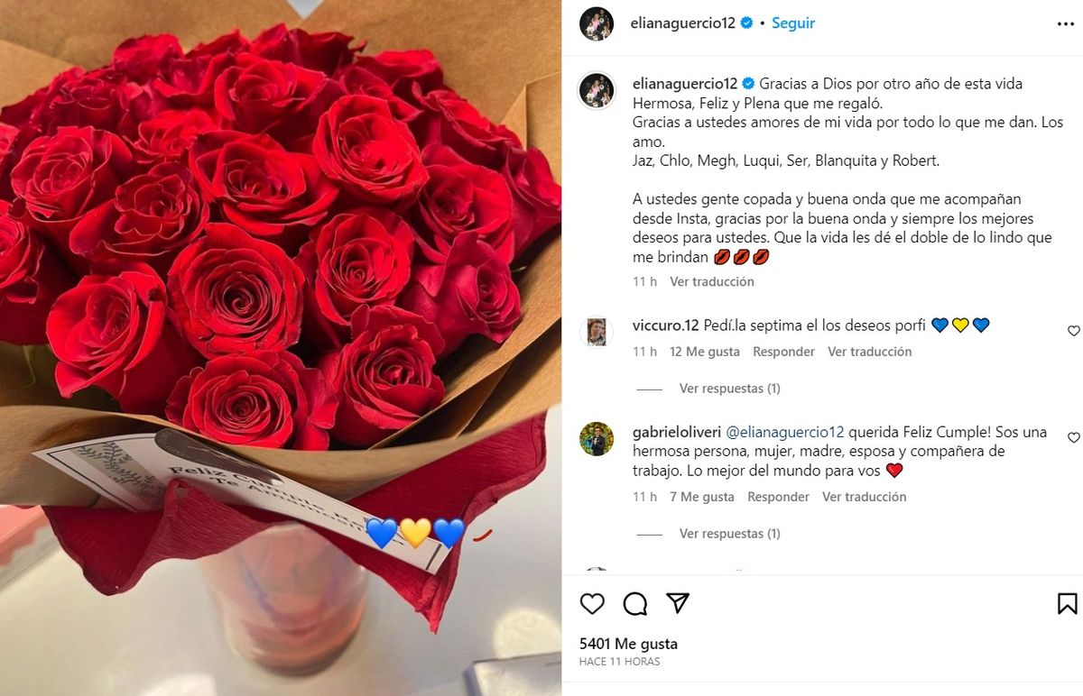 Y en un posteo, la madre de Jazmín, Chloé, Meghan y Luca Gael describió profunda: "Gracias a Dios por otro año de esta vida hermosa, feliz y plena que me regaló. Gracias a ustedes amores de mi vida por todo lo que me dan. Los amo. Jaz, Chlo, Megh, Luqui, Ser, Blanquita y Robert".
