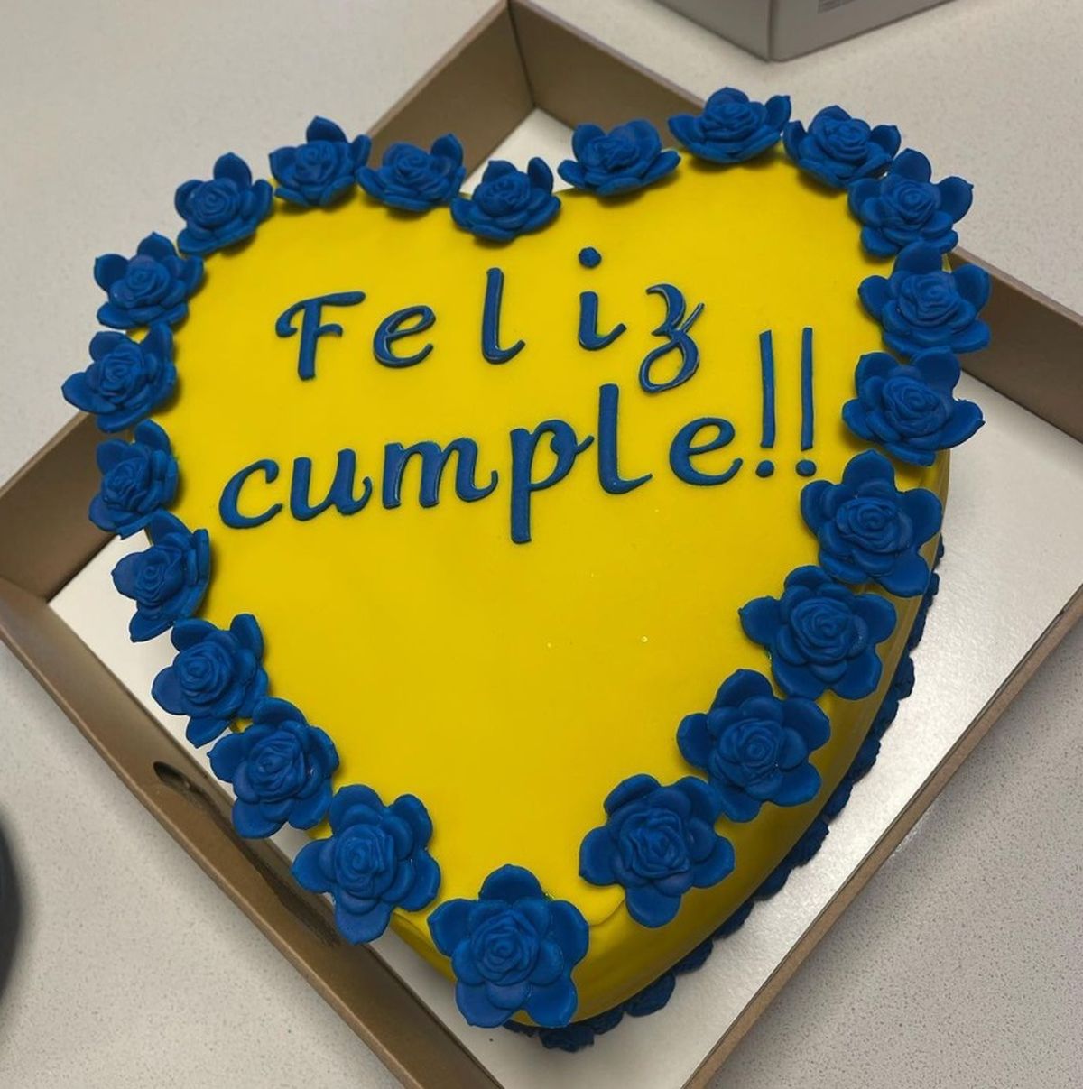 "¡Feliz cumple!", decía la torta con la forma de un corazón y los colores del club Xeneize del cual es fanática ella. "Gracias Familia hermosa los amo! @sergioromero sos todo!", expresó la ex vedette.