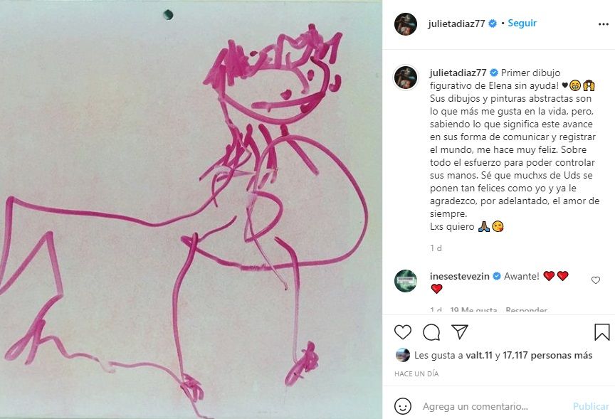 Y añadió: "Sobre todo el esfuerzo para poder controlar sus manos. Sé que muchxs de Uds se ponen tan felices como yo y ya le agradezco, por adelantado, el amor de siempre. Lxs quiero".