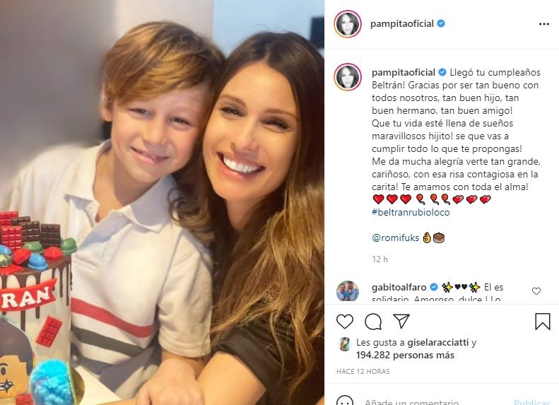 "Me da mucha alegría verte tan grande, cariñoso, con esa risa contagiosa en la carita! Te amamos con toda el alma!", cerró Pampita.