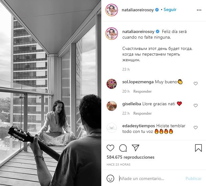 En las imágenes se puede ver a Natalia sentada en el balcón de su departamento y cantando mientras su pareja tocaba la guitarra.