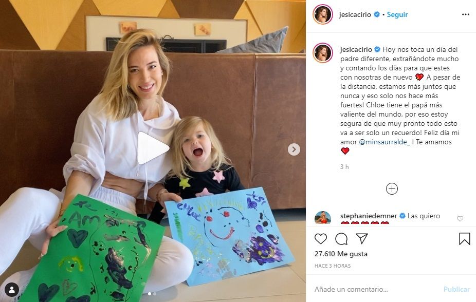 Y cerró: "Chloe tiene el papá más valiente del mundo, por eso estoy segura de que muy pronto todo esto va a ser solo un recuerdo! Feliz día mi amor @minsaurralde_ ! Te amamos".
