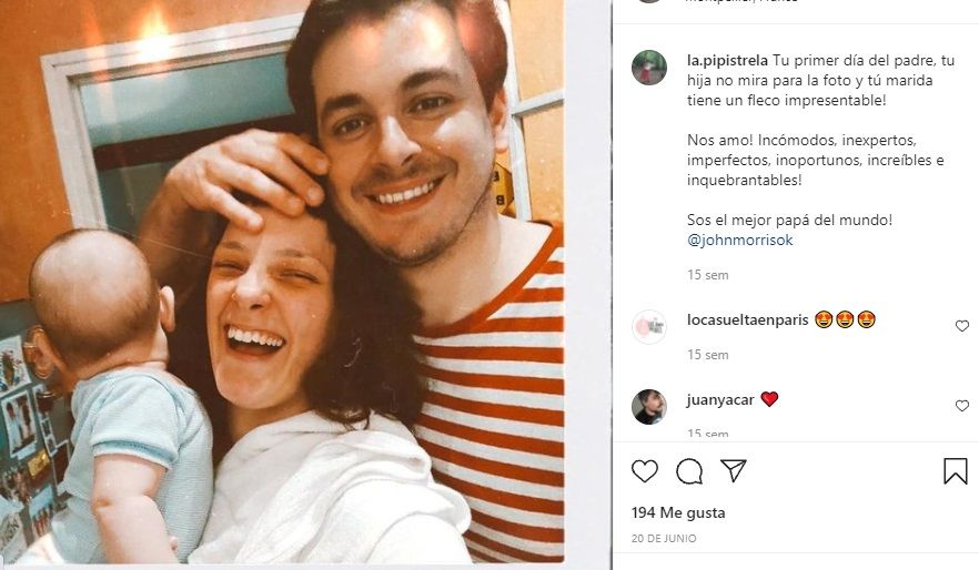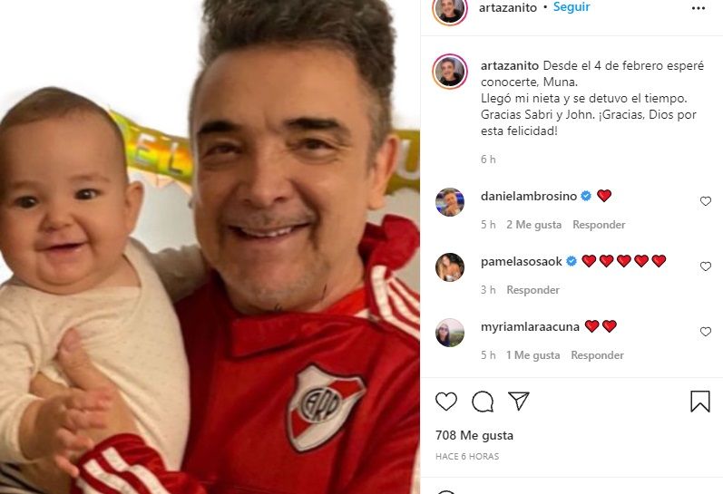 "Dicen que ser abuelo es “ser padre dos veces”, así que @johnmorrisok yo te entiendo más que nadie.Besos a los tres . Ya te amo bebé", expresó movilizado Nito Artaza, pareja de Cecilia Milone, al enterarse la linda noticia.